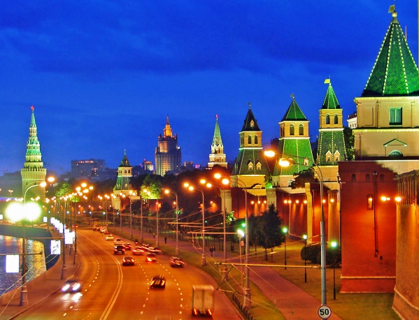 A Kreml felé indulunk késő este. Hatalmas erődítmény, cárok és kommunista pártfőtitkárok egykori lakhelye. Ma az elnöki palota székhelye, saroktornyain a vörös csillaggal.