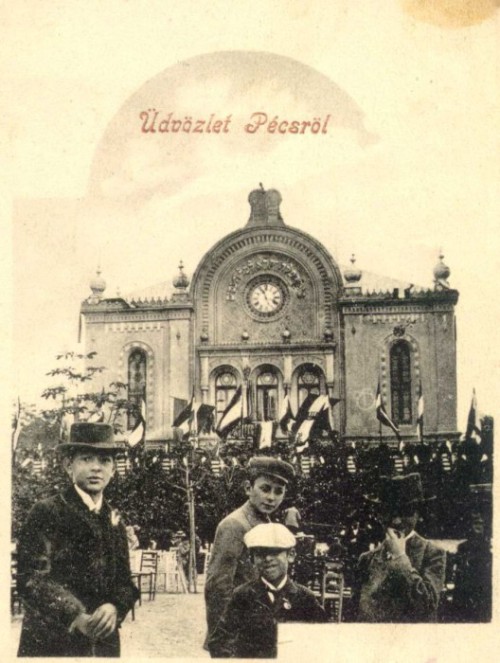 A pécsi zsinagóga egy háború előtti képeslapon