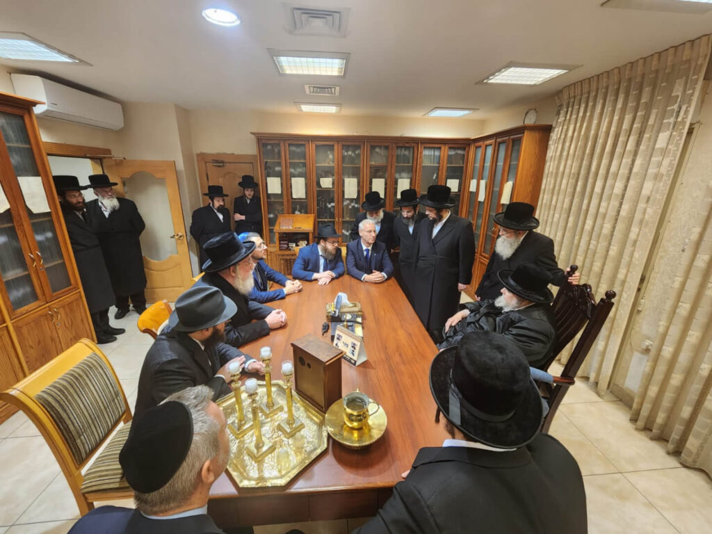 A magyar küldöttség tagjai a Belzi Rebbénél, Köves Slomó mellett Soltész Miklós államtitkár, másik oldalán helyettese, Fürjes Zoltán