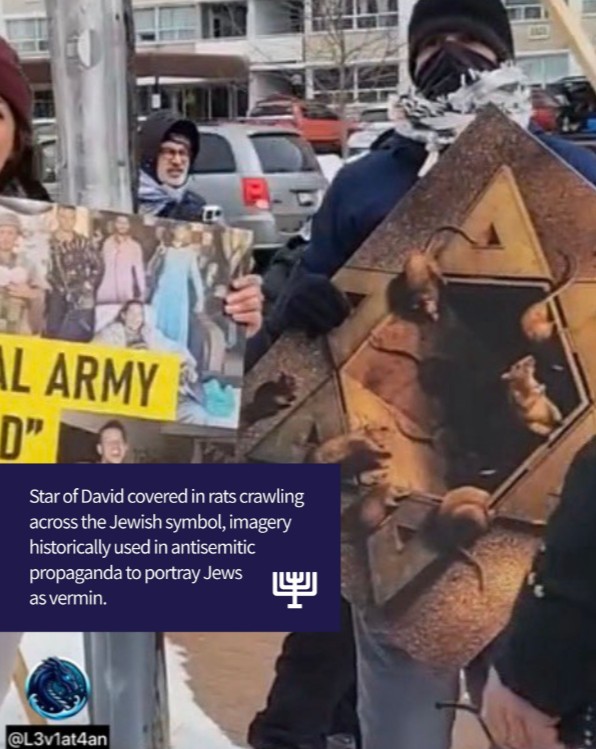 Torontóban a félreérthetetlennél is egyértelműbb antiszemita plakátokkal tüntettek, valószínűleg az Irán ellen indított háború ellen.