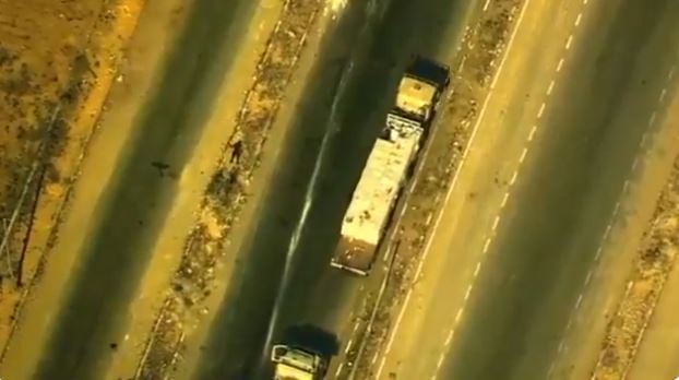 Egyesült Államok Központi Parancsnoksága (CENTCOM) közzétett egy drónfelvételt, amelyen Hamász-operatívok láthatók, akik tegnap kifosztottak egy segélyszállító teherautót a Gázai övezet déli részén.