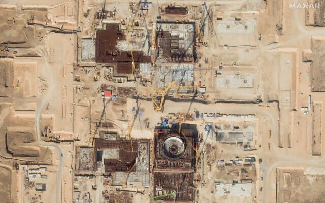 2025. február 14-én készült műholdfelvétel a busheri új, építés alatt álló reaktorokat mutatja, Teherántól 1200 kilométerre (750 mérföldre) délre. (Műholdkép ©2021 Maxar Technologies/AFP)