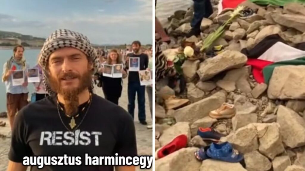 Helyi, palesztinbarát aktivisták vasárnap este politikai demonstrációt tartottak a Duna-parti Cipők emlékműnél. Palesztin zászlót és cipőket helyeztek el a Duna partján az emlékmű alatt, majd kis papírhajókat tettek a vízre. Utóbbival Greta Thunberg Gázába induló flottáját ünnepelték.