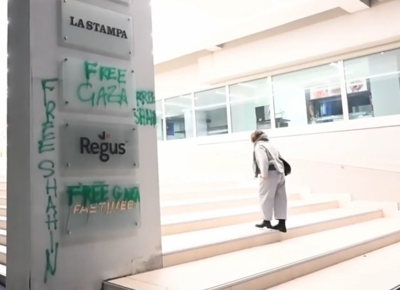 A vandálok péntek este hatoltak be a torinói székhelyű La Stampa szerkesztőségébe, ahol az országos újságírósztrájk miatt éppen nem tartózkodott senki. A szerkesztőséget feldúlták, a szobák falaira a Free Palestine (Szabad Palesztina) feliratot írták vörös festékkel. Az általuk megosztott videófelvételek tanúsága szerint azt kiabálták, hogy az újságírók terroristák és cinkosok, és a célpontok között az első helyen állnak. A La Stampa székházának bejáratát trágyával piszkolták be.