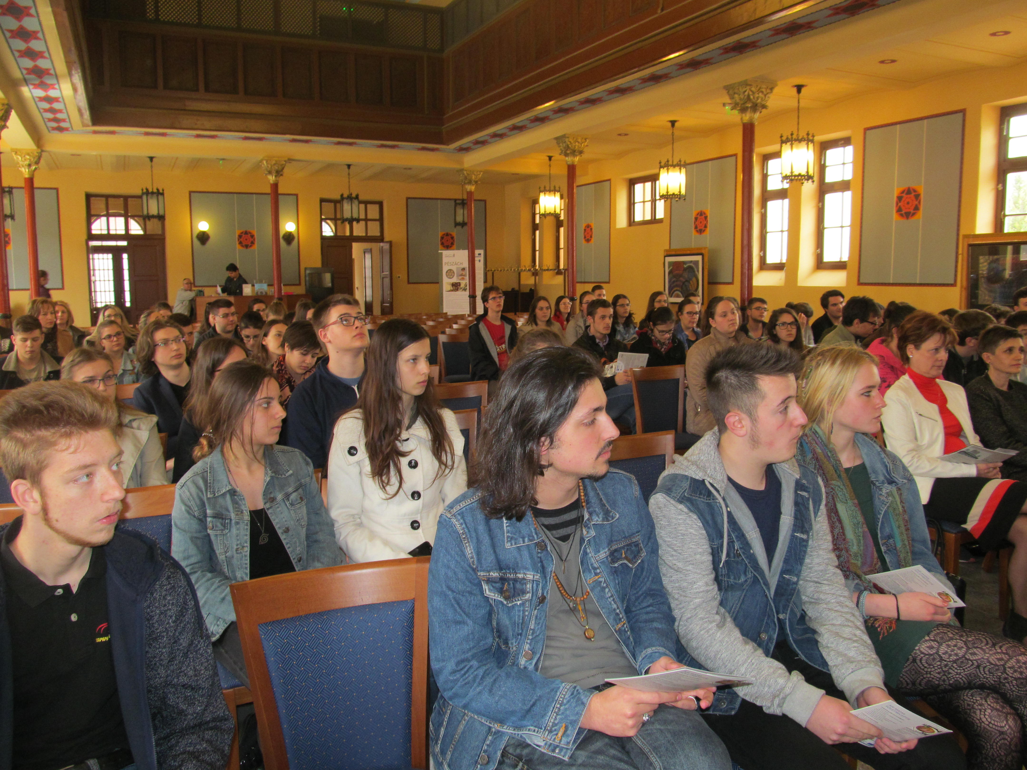 A Debrecen Televízió által készített „Akik lelke megmaradt a hitben” című dokumentumfilmet nézték meg a résztvevők a hitközség kultúrtermében. Ebben, a történelmi áttekintés mellett jelenleg Debrecenben, Izraelben és az Amerikai Egyesült Államokban élő holokauszt túlélőktől hiteles visszaemlékezéseiken keresztül hallhattunk embertelen meghurcolásukról. A háború előtti évek, a helyi gettó, a deportálás és a munkatáborok megpróbáltatásai képekben és beszélgetésekben elevenedtek meg. A film megtekintése után a fiatalok meg is beszélhették a holokauszt kapcsán felmerült kérdéseiket Heller Zsolt folkesztéta segítségével.