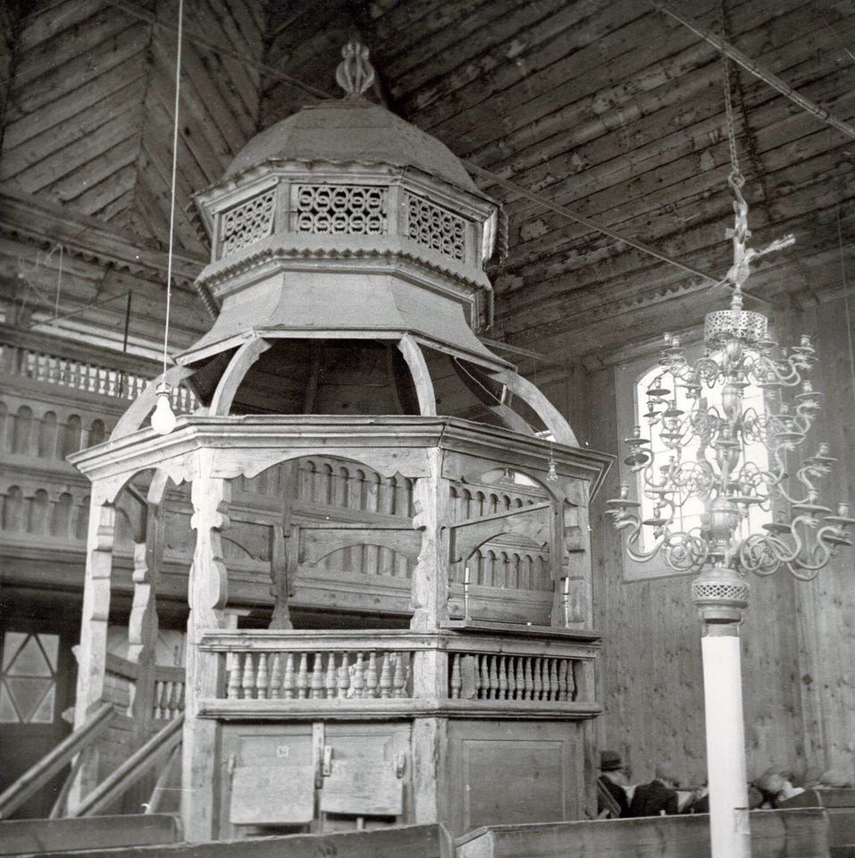 Lengyelországban a 16. századtól a 19. századig minden településen, ahol éltek a zsidó élet szíve és lelke a zsinagógák közösségeiben lüktetett. Közösségeik a kezdetekben nagy többségében fából építették fel zsinagógáikat. Bőségesen állt rendelkezésre a faanyag, például a vörösfenyő. Vilkaviškis litván település esetében Zygmunt király felesége adományozta a fát a zsinagóga építéséhez. Másutt a stetl elosztása szerint minden vállalkozónak előre kellett fizetnie egy bizonyos összeget az építési költségekre.A zsidó mesterek gyakran egyetlen szög használata nélkül építették fel a zsinagógákat. Sok zsinagógában volt pompásan faragott bárka, melyeket szerszámok használata nélkül terveztek és kimunkálásához csak egyetlen faragókést használtak. A faragott rönkökből épült zsinagógák gyakran többszintes tetővel. A szabályok szerint a zsinagógák általában nem lehettek magasabbak, nagyobbak, mint a keresztény templom, a városháza. Vilniusban például a törvény betartása, és mégis szükséges belső magasság megteremtése érdekében jóval az utca szintje alá került a zsinagóga padlójának szintje. Kint a zsinagóga háromemelet magasnak tűnt, de belül több mint öt emeletre szárnyallott. A fa zsinagógákat építő ácsmesterek a tetők alatt ötletesen elrejtett például támaszokat alkalmaztak, ezek tartották a belső kupolákat. Przedbórzban 8,80 méter magasra emelkedett a hordós nagyterem. A hordós fából készült plafon egy bonyolult hold és csillag motívumba lett borítva. Gwoździecben1700 és 1721 között egy nyolcszögletű kupola került a teremre. A teljes falfelületet beborító festmények csillagjegyeket, arabeszkeket, állatképeket, virágos mintákat és héber szöveget ábrázolnak. Ezekben a fa zsinagógákban a Tóra bárka általában gazdagon faragott oroszlánokkal, virágdíszekkel és állatokkal. . Lengyelországban 1939-1941 között az összes fából készült zsinagógát felgyújtotta a megszálló német hadsereg.