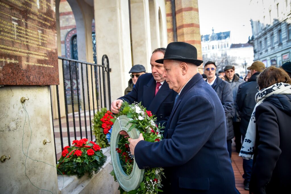 Először Szinetár Dóra énekelt egy dalt a Gettó című Jávori-műből Kovács Adrián zongorakíséretével, majd a felszólalók sorát Mester Tamás, a BZSH elnöke, a Mazsihisz alelnöke kezdte, aki elsőként a holokauszt-túlélőket köszöntötte. Majd Plutarkhoszt idézte: