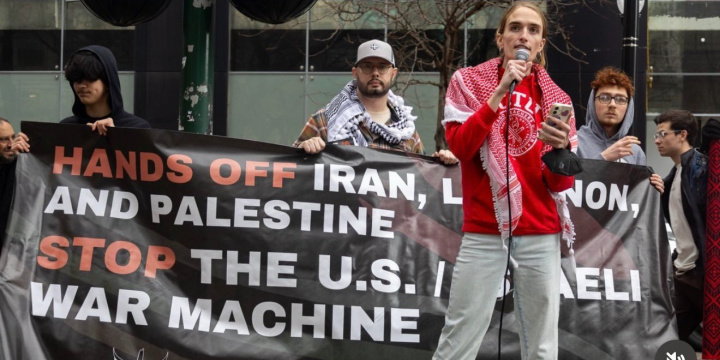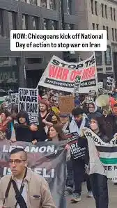 A „Hands Off Iran & Lebanon” („El a kezekkel Irántól és Libanontól”) nevű tüntetést március 7-én tartották Chicagóban, és a rendezvény bőkezű támogatást kapott a Chicago Teachers Union (CTU) nevű tanári szakszervezettől, valamint több szocialista és iszlamista csoporttól. A szervezők között volt a Palestinian Youth Movement is, amelyről ismert, hogy kapcsolatokat ápol a Popular Front for the Liberation of Palestine (PFLP) nevű szervezettel. A PFLP nemzetközileg terrorista szervezetként van nyilvántartva, és korábban fegyveres repülőgép-eltérítésekben, öngyilkos merényletekben, lövöldözésekben és merényletekben vett részt. A csoport évtizedeken át izraeli és más nyugati célpontokat támadott.