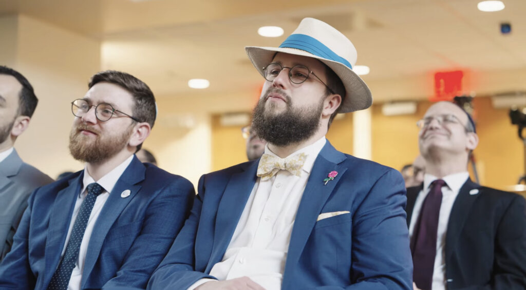 Cleary, akit a fenti képen a felszentelési szertartásán láthatunk, azzal a feltétellel csatlakozott a YCT-hez, hogy nyíltan vállalhatja melegségét. (YouTube Screenshot /Yeshivat Chovevei Torah)