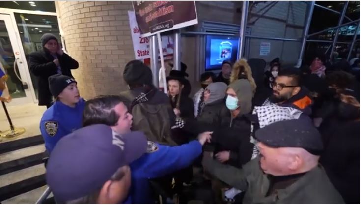 Anticionista tüntetők az intifádát éltettek és zsidókat inzultáltak egy szerdai demonstráción egy prominens New York-i zsinagóga előtt.