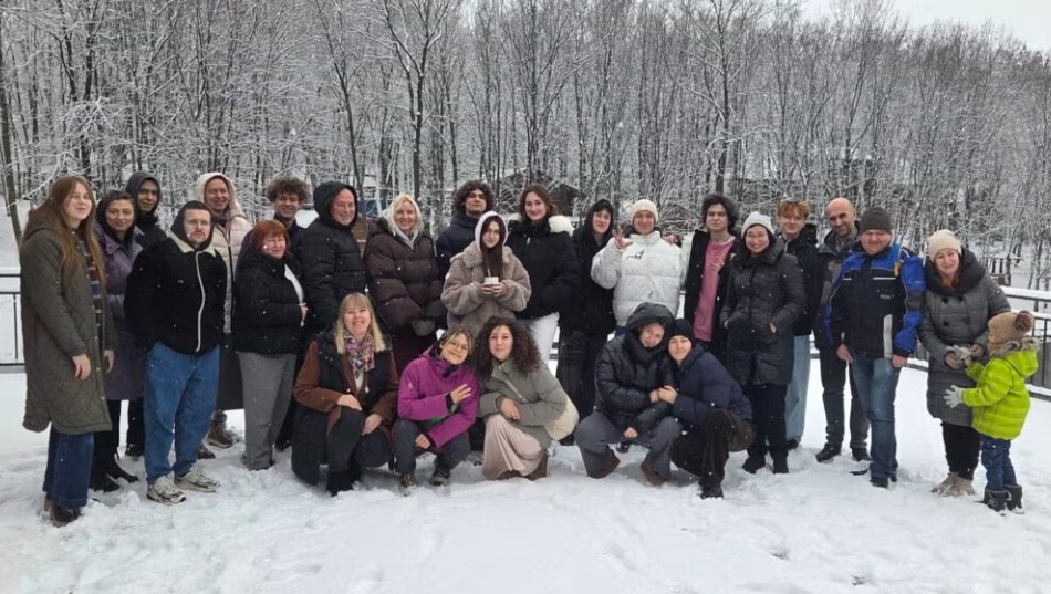 Irina Gritsevskaya rabbi a Ben és Harriet Teitel Szeminárium tanulócsoportjával Ukrajnában, 2026 elején (Fotó: Midreshet Schechter Ukraine)