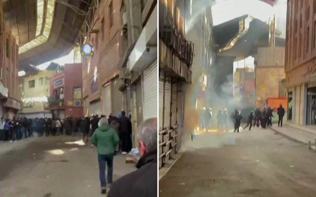 Szemtanúk szerint a tüntetők ülősztrájkot tartottak Teherán Nagy Bazárjában, mire a biztonsági erők végül könnygázt vetettek be, és feloszlatták a demonstrálókat, miközben a piac többi része bezárt.