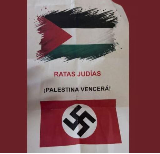 Madrid egyik külvárosában élő zsidó diákok névtelen leveleket kaptak, amelyekhez a “Zsidó patkányok. Palesztina győzni fog!” felirat mellé náci szimbólumokat is mellékeltek. Ez a kombináció a zsidó közösség vezetői szerint aláhúzza a klasszikus antiszemitizmus és a kortárs Izrael-ellenes uszítás közötti kapcsolatot.