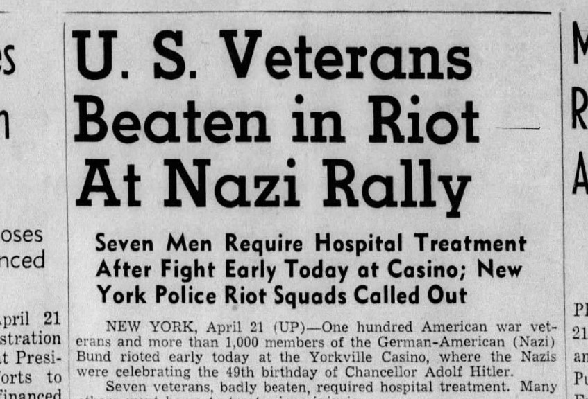 Schnall akkor még nem sejtette, hogy a báltermet a German American Bund nevű amerikai náci szervezet bérelte ki. Azt sem tudta, hogy április 20-a Hitler születésnapja, amit az amerikai nácik nagyszabású partival ünnepelték meg aznap.