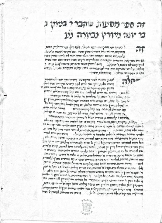 Tudelai Benjámin Utazások könyvének első oldala a szöveg legfontosabb szövegemlékben (British Museum Add. 27089)