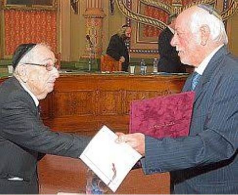 Schweitzer József díszdoktori címet vesz át Schöner Alfrédtól 2012-ben. A fénykép forrása: az OR-ZSE korábbi honlapja (Kocsis Péter)