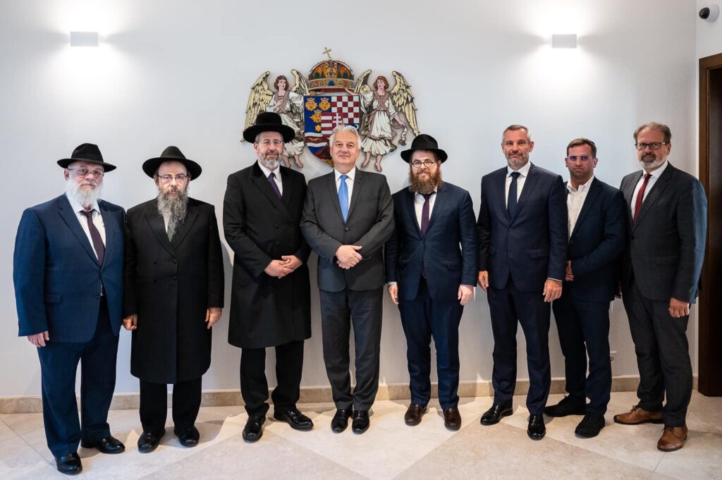 Semjén Zsolt és a Chabad-EMIH vezérkara David Lau izraeli askenázi főrabbi minapi látogatásakor a Karmelita kolostorban, a Miniszterelnökségen